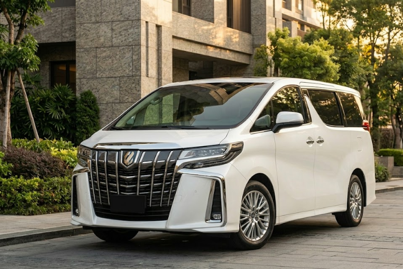 The exterior features a bold and stylish design with a large front grille, sleek LED headlights, and a strong road presence. Inside, the Alphard offers a luxury cabin with high-quality materials, comfortable seating, and advanced technology, making it ideal for long journeys and VIP transport.